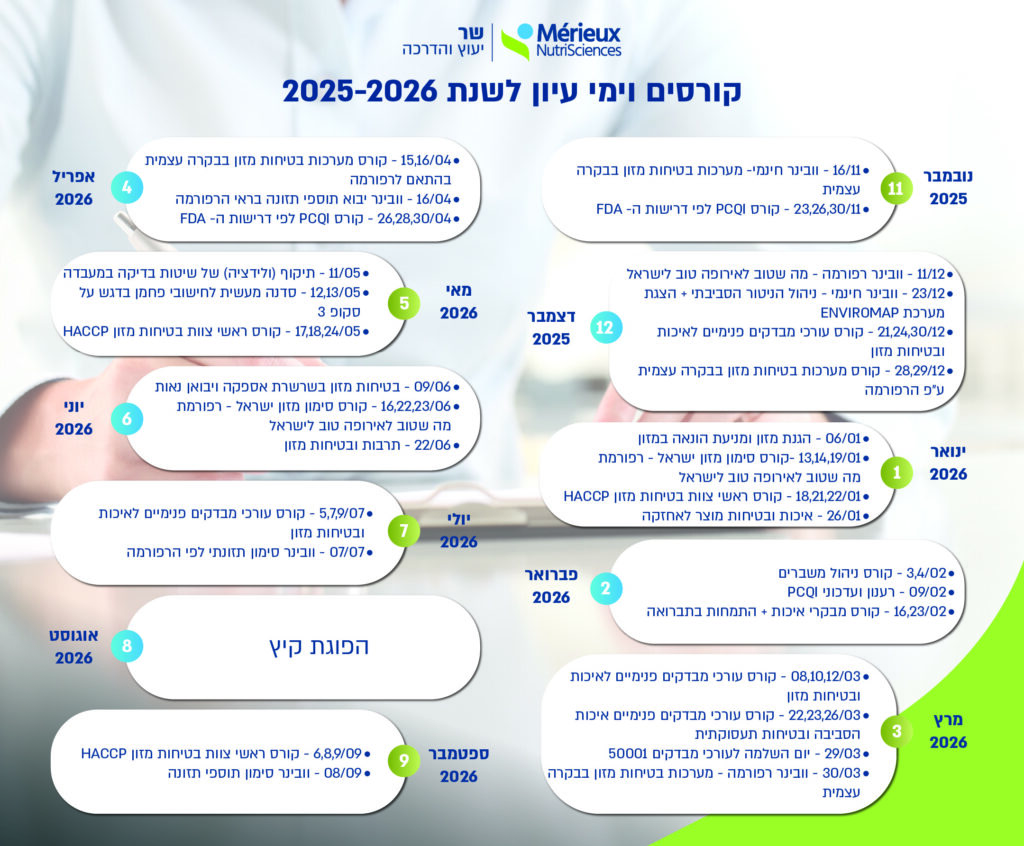 מרכז ההדרכה של Mérieux NutriSciences בישראל מציע לימודים בתחומי העיסוק של החברה במגוון אמצעים ופורמטים.